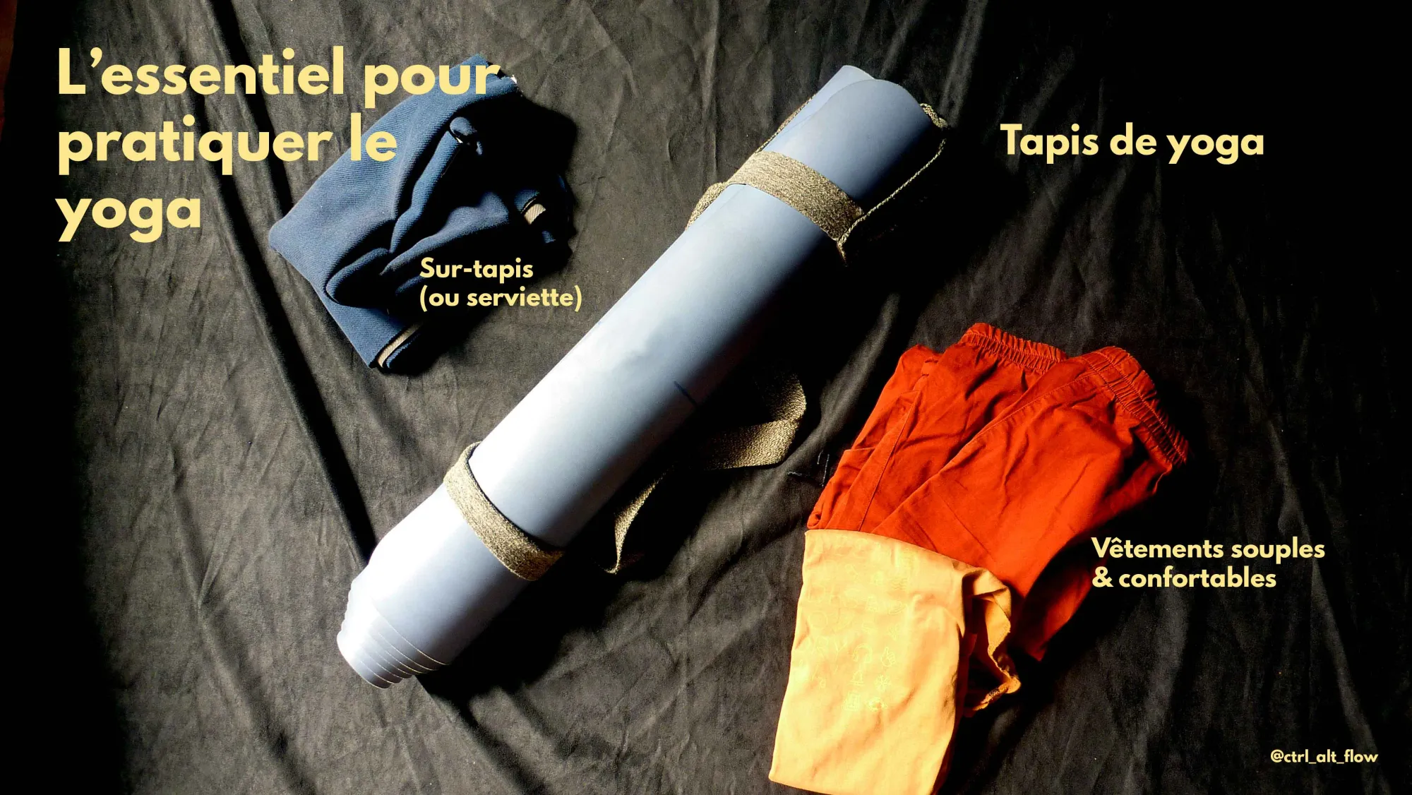 Au moment de débuter en yoga, de nombreux élèves me posent la question de l’équipement à acquérir. De quel matériel a-t-on (vraiment) besoin pour pratiquer le yoga chez soi ou venir en cours ?